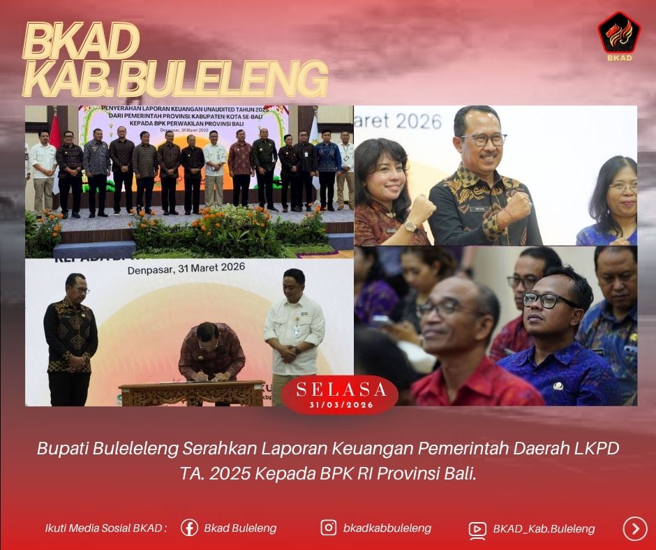 Bupati Buleleng, I Nyoman Sutjidra, menyerahkan Laporan Keuangan Pemerintah Daerah (LKPD) Unaudited Tahun Anggaran 2025 ke Badan Pemeriksa Keuangan (BPK) RI Perwakilan Provinsi Bali. Penyerahan dilakukan langsung oleh Bupati Sutjidra ke Kepala BPK RI Perwakilan Provinsi Bali, I Gusti Ngurah Satria Perwira, bertempat di Kantor BPK RI Perwakilan Provinsi Bali, Selasa (31/3/2026).