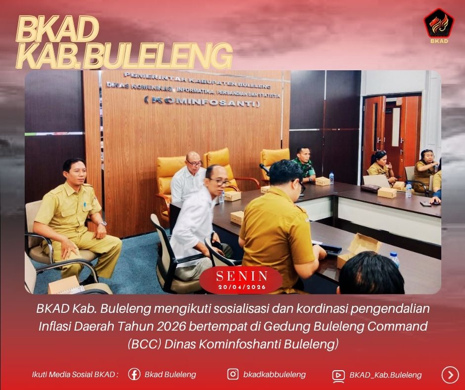 Singaraja, 20 April 2026, BKAD Kab. Buleleng Mengikuti Sosialisasi Dan Koordinasi Pengendalian Inflasi Daerah Tahun 2026 Yang Bertempat Di Dedung Buleleng Commad Center (BCC) Dinas Kominfoshanti Buleleng.