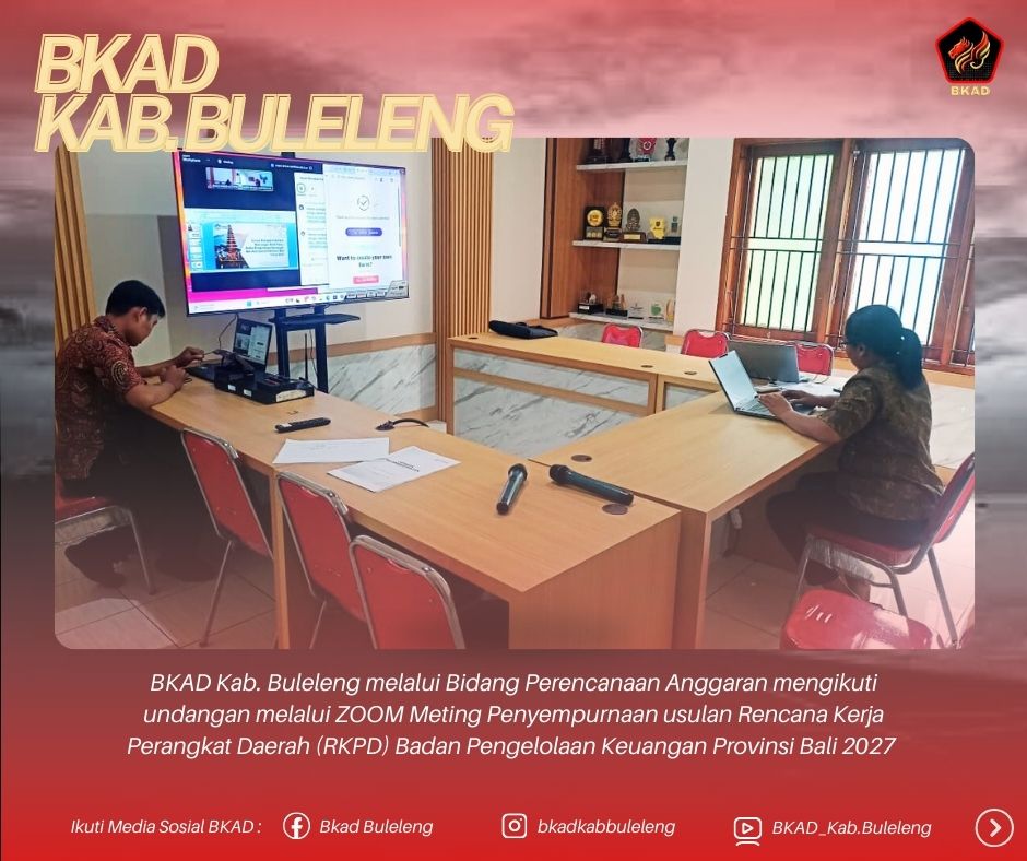 Singaraja, 24 Februari 2026, BKAD Kab. Buleleng Melalui Bidang Perencanaan Anggaran Mengikuti Undangan Rapat Melalui ZOOM Metting Penyempurnaan Usulan Rencana Kerja Perangkat Daerah (RKPD) Badan Pengelolaaan Keuangan Provinsi Bali 2027.